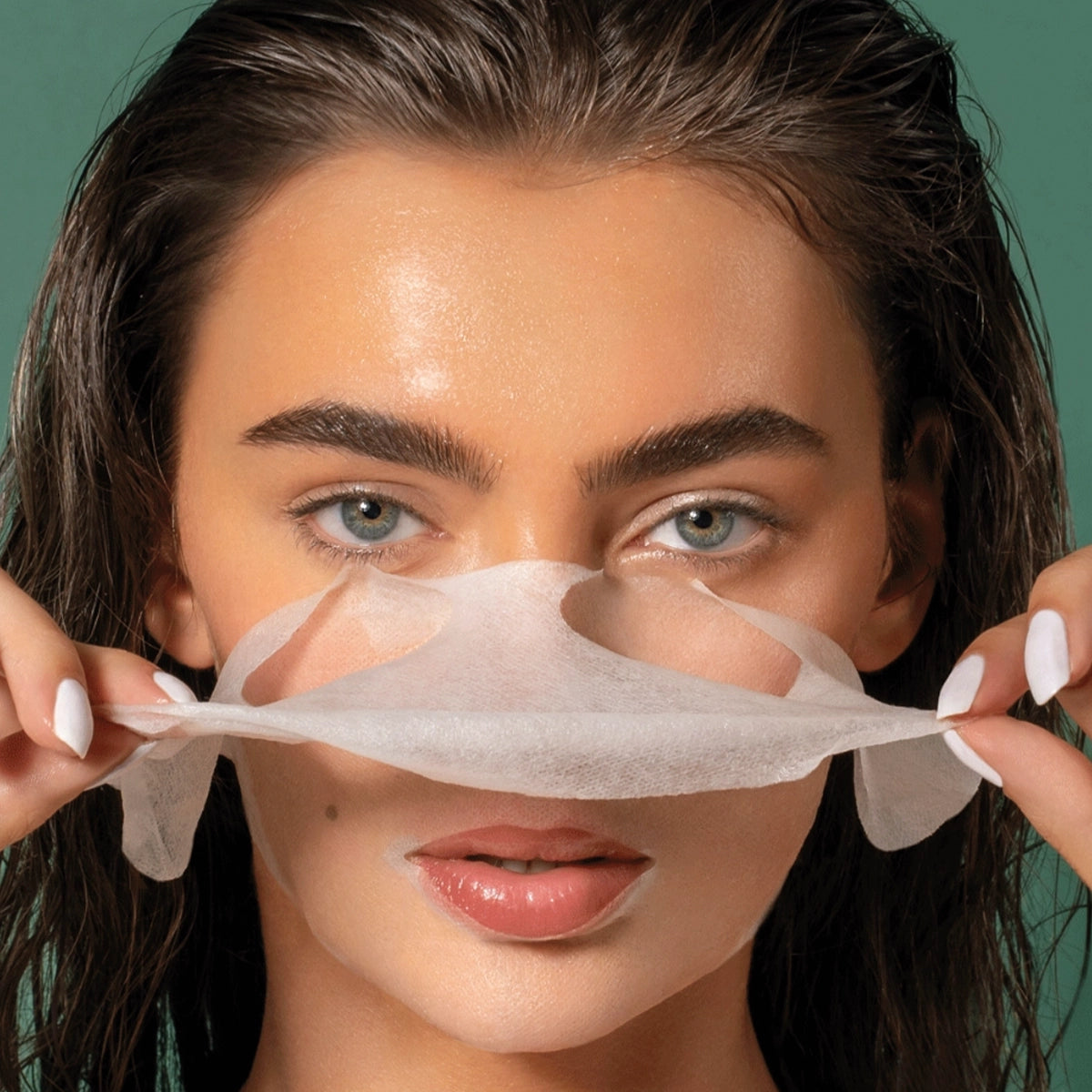 Die atmungsaktive Tuchmaske aus 100% ultrafeinem Baumwollfutter mit optimaler Passform passt sich jeder Gesichtskontur an und wirkt wie eine zweite Haut für ein sichtbar verbessertes Hautbild
